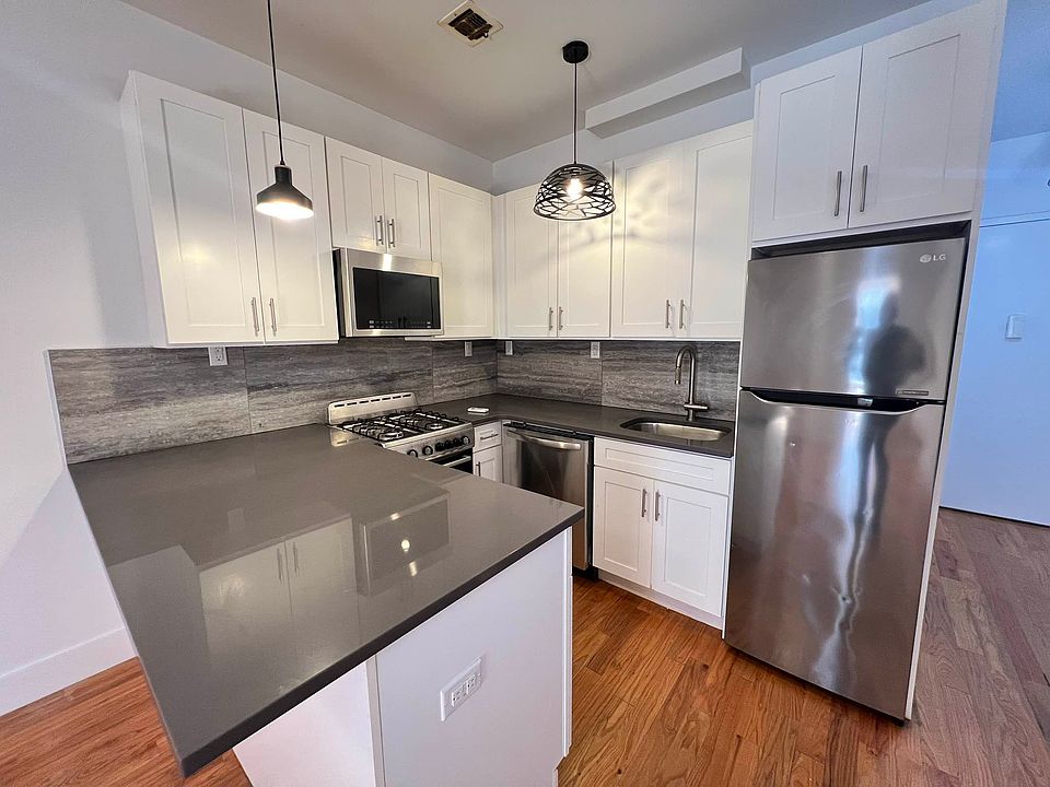 Brand new large one bedroom with a KITCHEN ISLAND and WASHER DRYER IN UNIT!! Amazing natural light State of the art kitchen with stainless steel appliances, granite countertops, dishwasher, and a bar table. Central AC Gorgeous hardwood floors Modern bath with a deep soaking tub