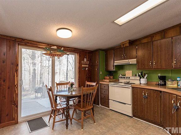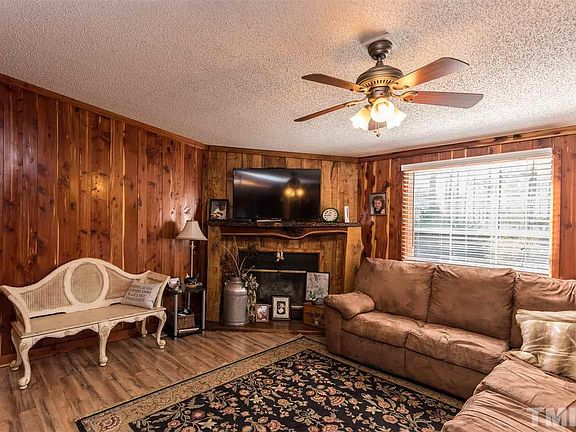 Sweet home on large lot near Jordan Lake. Chain link fenced back yard, huge deck, circular driveway, wired storage building. Split floor plan. Metal roof. Cedar paneling in living areas. Laminate flooring. Corner fireplace with gas logs. Hot tub conveys as is and sellers have never used it. Close to Moncure School. Easy access to US1. Walk to Moncure school and Jordan Lake!