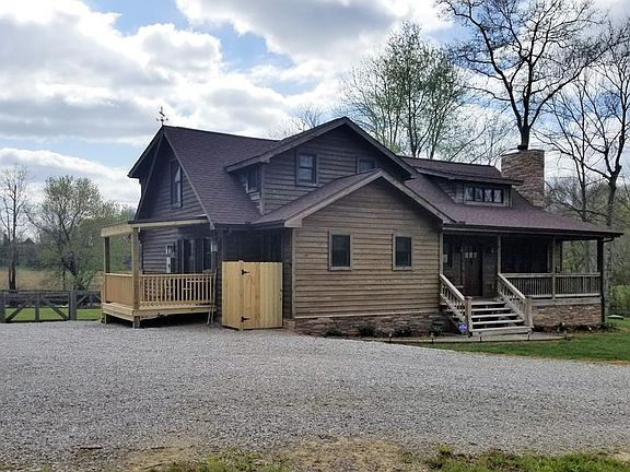 3 BR, 3 BA 2700 sf, 9 y/0 "like new" home on 20.9 acres. New MA BR suite on the main level. New det gar/workshop. Stg bldg. Pond. Fenced back yd. Screened bk porch. Hardwood, carpet & tile flooring. Stainless appliances. Gas range. W/D included. 7 y/o roof. Garden area. Community pond w gazebo. Dual zone gas & elec heat pump. The river flows yr round with summer level 6-8' & winter level at 14-16' behind the home. Gas stone vented FP. 2 septic tanks for solids & liquids. Furniture and tractor are neg. Owner willing to stain the home to buyers choice of color with reasonable offer.