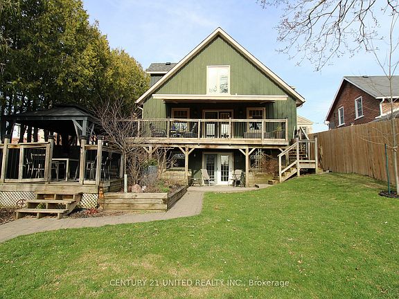 This stunning 2 storey property boasts 4 second-floor bedrooms and 4 bathrooms. The main floor has been transformed into an open-concept space, featuring a modern kitchen and living area with built-in ceiling speakers. Unique kitchen features include two sinks and hidden built-in appliances. Convenience is key with separate main floor and lower level laundry facilities, along with a kitchenette downstairs. The entertainment system is wired to outside speakers, perfect for hosting gatherings on the deck and in the backyard. The basement is a walkout, leading to a meticulously maintained perennial garden and a screened-in gazebo. Additional features include a backyard shed with its own electrical panel, a full-width power awning on the upper deck, and custom concrete driveway and sidewalks. The roof shingles were recently replaced, and the south side roof is reinforced for potential solar panels. The custom-designed carport includes a 240V outlet for EV charging.