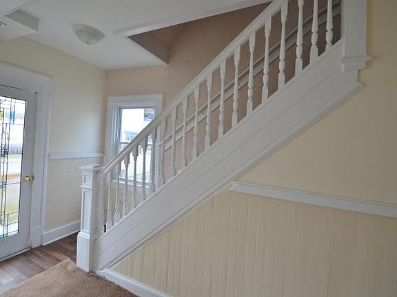 Nicely refinished with all new windows, carpet, hardwood floors and a new kitchen with bamboo floor. Move right in and enjoy. The formal living room has a large bow window that let's lots of light in. Walk back the hallway to the large Dining room with hardwood flooring and there is a 2 person breakfast bar with a pass-through window to the new kitchen. 3 large bedrooms upstairs and a full bath. Large storage building out back. $82,900.