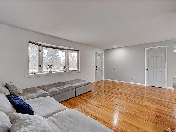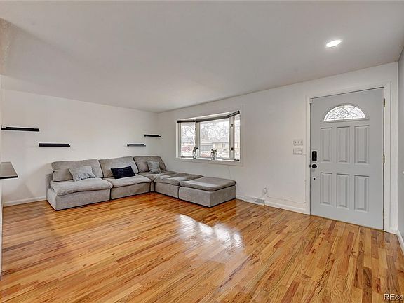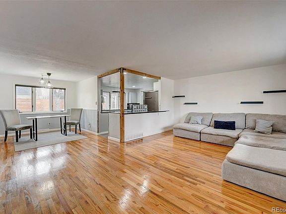 Welcome to this stunning and tastefully updated 5 bedroom, 2 bathroom home, offering a spacious 2,804 square feet. Boasting gleaming wood floors throughout, this home features 3 bedrooms upstairs, including a spa-like bathroom with a heated backlit mirror and a primary bedroom with access to a secondary bedroom, providing convenient access for child care or creating your own sizable walk-in closet. The oversized rec/bonus room located off of the kitchen is a true gem, featuring skylights, a vaulted ceiling, and ample space for a game room or theater, making it perfect for entertaining guests or spending quality time with family and friends. The large open basement with a wood-burning fireplace, 2 non-conforming bedrooms, and 1 bathroom is ideal for creating additional living space or for accommodating guests. Fresh paint throughout the house creates a clean and fresh ambiance, making this home feel like new. Enjoy the convenience of the app-controlled sprinkler system in both the front and back yards, which helps maintain stunning landscaping. The lot size of 8,189 square feet is absolutely stunning, and the backyard is equipped with drop irrigation for gardening. A large covered patio (equipped with misters), built-in gas fireplace, additional fire pit, shed, bar, and fenced dog run create the perfect outdoor oasis for entertaining and relaxation. Patio furniture is included! This property also features an attached 2-car garage and is conveniently located near Aurora Hills Golf Course, Aurora mall for shopping, and an abundance of restaurants and entertainment. The recent updates, including the remodeled spa-like bathroom and new kitchen, make this house a true gem and a must-see for any discerning buyer. Schedule a tour today and see for yourself all that this home has to offer!