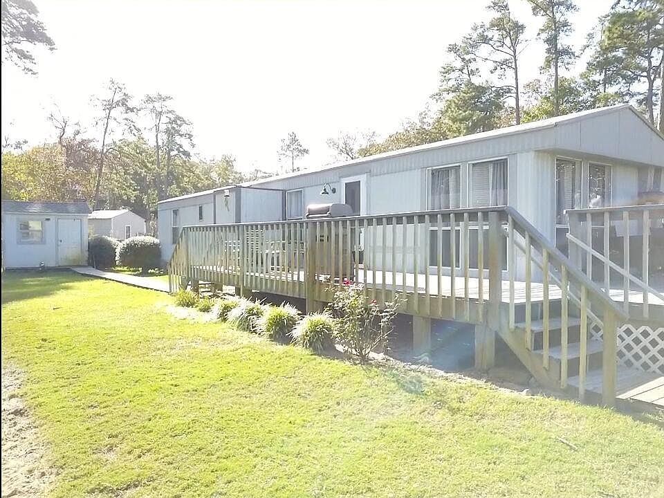 Looking for an updated and cared for affordable beach home that is close to all things OBX? You have found it. This home is classified as a real property that can be financed. Great option for first time home buyer(s) or a 2nd home getaway. The owners have taken great pride and care with new floors, paint, roof coating, electrical, and special touches inside and out. Enjoy the beach for the day and come home to a refreshing outdoor shower on a large deck with great shade in the morning and evening that's perfect for BBQ's and gatherings. Inside you will find an updated kitchen that opens up to a large living room. Two bedrooms and bath at end of hallway with a private access door with small deck. Just a short trip- 3.2 Miles - Down Colington Road and take a Left on Sandpiper Drive. Convenient to the First Flight Schools, the KDH Municipal center and rec areas including Run Hill State Park, Casey Logan Disc Golf Course, Tennis Courts and restaurants. Put this one on your radar and come take a look!