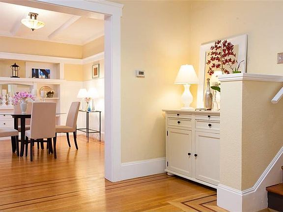 With a walk score of 95, this handsome California Traditional was built in 1936 and has ben thoughtfully remodeled to retain its original charm. A large, bright living room with wainscoting, dual-pane windows and period fireplace connect to a large dining room with wood geometric ceiling. Most rooms feature beautiful hand crafted floors. A new kitchen with marble and stainless steel appliances plus a half bath blend seamlessly with the style of the home. Upstairs there are three large bedrooms and two new bathrooms including a master suite with large closets and deck access. The updated home is steps from the historic Grand Lake Theater, the vibrant dining and shopping of Grand and Lakeshore Avenues plus the very popular Saturday Farmer's Market. Easy San Francisco commute.