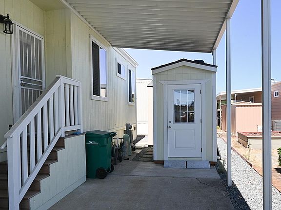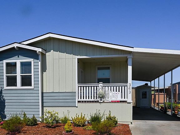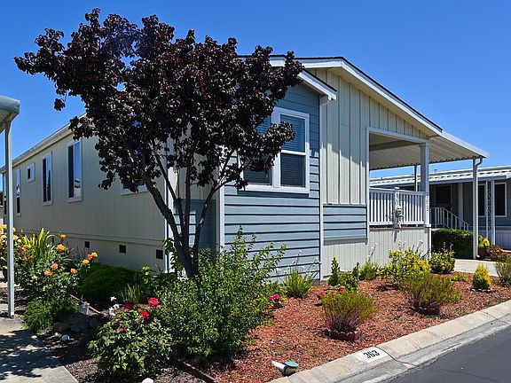 Beautiful Newer 3 bedrooms with 2 baths manufactured home built in 2017, located in a 55+ community. Designed with open floor plan, Spacious living room with high ceiling, dining area and big windows with ample natural lighting. New upgraded laminate floor in 2021. Open kitchen features Countertop, French door refrigerator, gas range, dishwasher and microwave. Beautiful maple cabinets in kitchen and bathrooms. Master suite with private master bath. Master bath has Dual Vanity Sinks, Faucets & Lighting, Separate Tub and stall shower. Indoor laundry room, Carport for 2 cars and two storage sheds. Mission Bay Community features: swimming pool, hot tub, his & hers saunas, his & hers exercise rooms, billiards, card rooms, large clubhouse with professional kitchen, laundry, outdoor BBQ area. MUST SEE!!