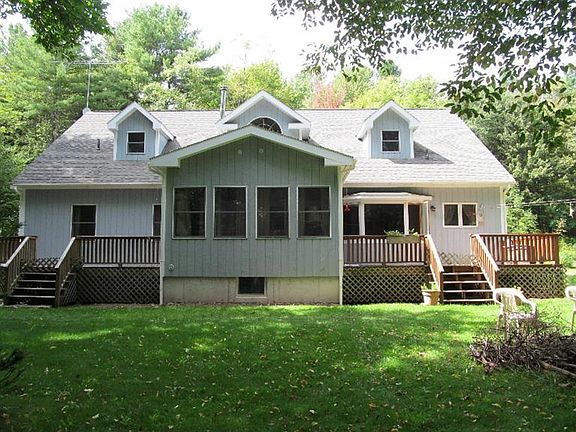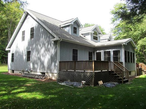 A Beautiful House and a Big Pond is what you'll find at this lovely 20 acre property located on a country road in Laurens, Take a look at the private grounds with raised bed gardens from the porch or one of two back decks. Then go inside to admire the vaulted ceiling over the large, open concept living, dining, and kitchen area. There is also a master bedroom with en suite, two additional bedrooms, and another full bathroom on the ground floor. Go upstairs to the interior balcony overlooking the great room where you will find two large, additional rooms that you can finish according to your style. Make your way back downstairs and outside through the laundry room and then the oversized, two car, attached garage where you will find the garden shed and a wood shed to store wood for the wood stove. Don't forget the enormous basement that can be finished or used for storage and workshop area. Close to Cooperstown and Oneonta. Schedule your showing today.