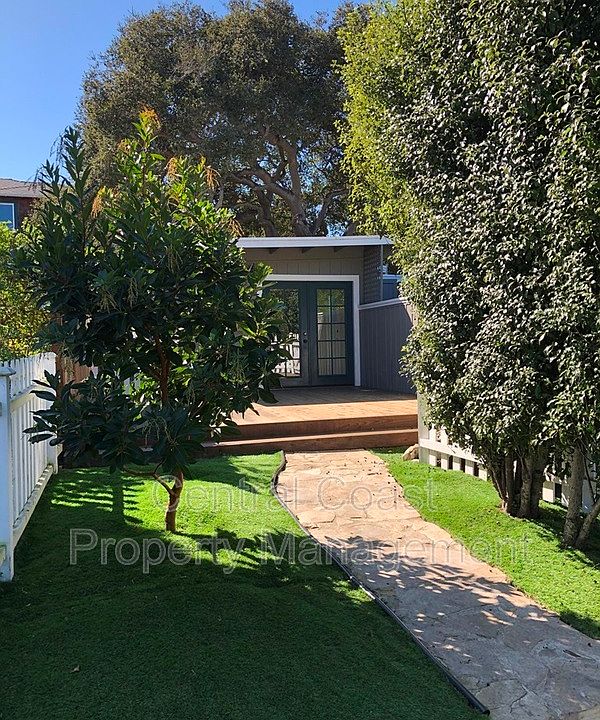 APPLICATIONS PENDING! Available for move in September 16th is this Cozy Pacific Grove cottage of approximately 390 square feet. $1950.00 per month $1975.00 Security deposit. A small dog or cat may be considered, if accepted $35.00 per month pet rent is applicable. Viewing available by appointment. Please do not disturb the current tenant. Vinyl plank flooring can be found in the living room kitchen, bedroom, and bath. In the living room you'll find a set of skylights and a set of French doors leading out to the newly built deck providing a wonderful outdoor living space. The cozy kitchen features tile counter-tops and backsplash, new cabinets, a compact gas oven range combination, and refrigerator. The bedroom is ample enough to accommodate a queen size bed and features a full closet. In the bath you'll find a stand alone vanity, a stall shower, and a compact washer and dryer. For those bigger loads two laundromats are within easy driving distance. Downtown Pacific Grove and Lover's Point nearby. Cost for basic utilities will be shared with the main house and is based on occupancy.
