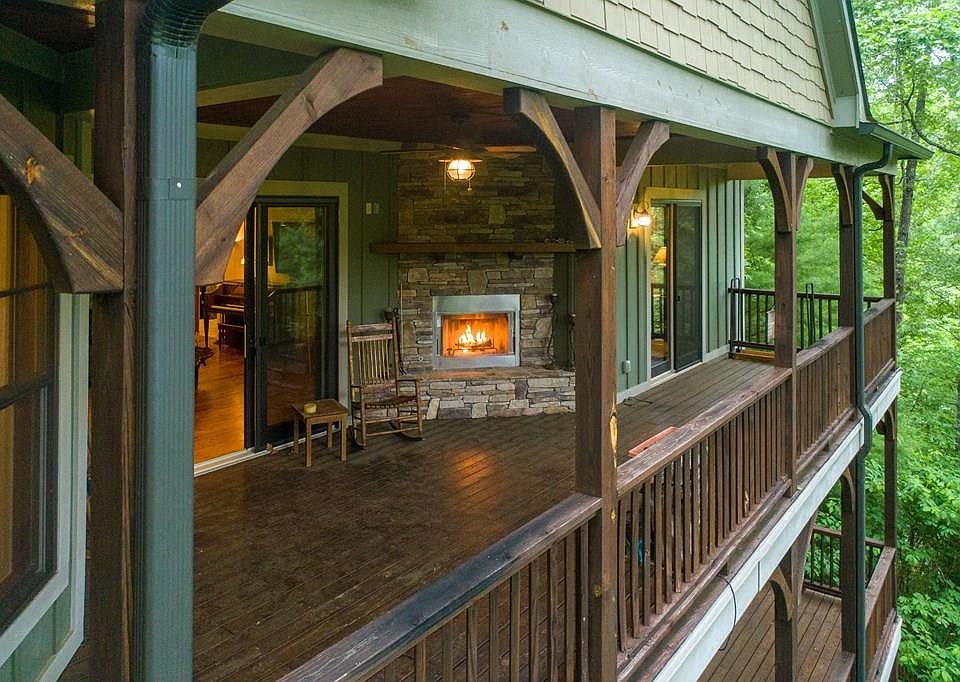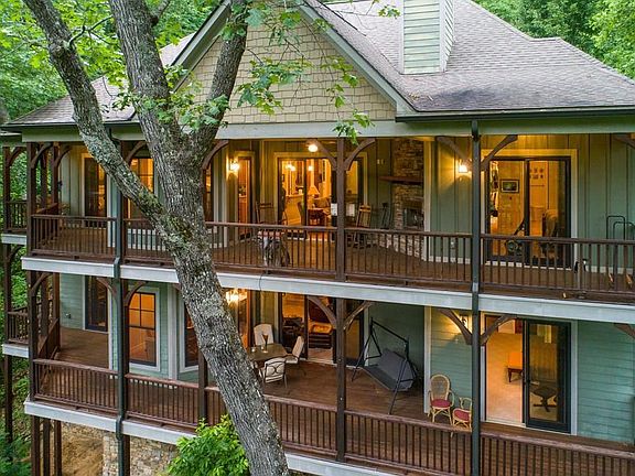 Custom-built as their mountain oasis on 2+ acres, this one-owner home lives large with 3 bedrooms with ensuite baths, a bonus room with ensuite bath and 2 levels of living spaces; yet FEELS like home, from the warmth provided by the Australian Cypress floors, beam ceilings and stone stack fireplace as you pass through the entrance hall. Enjoy complete privacy in this exclusive neighborhood of custom homes each nestled perfectly within the tree canopy. Host large cookouts on the ample deck with an adjacent firepit set between the home and the large 2 car detached garage. Observe the breathtaking change of seasons from the covered deck with an outdoor fireplace to keep you warm on cool fall nights! Luxury details extend from the gourmet kitchen upstairs overlooking the mountains, to the wet bar, dedicated exercise room, office (with a view!) & sound proof music studio downstairs! All of this within 5 min to Western Carolina University!
