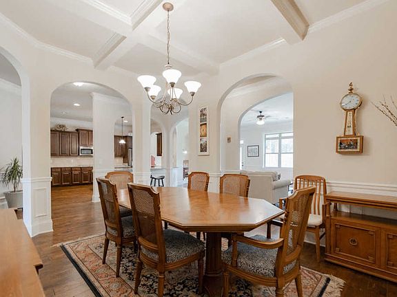 This Executive Brick Home is situated on a large .84 acre lot that backs up to the woods for privacy. Beautiful master down with formal dining room and keeping room, hardwood floors, spacious kitchen with island. The formal dining room features coffered ceilings, heavy molding and chair rail. The living room has smooth ceilings, a stone gas fireplace and is open to the gourmet kitchen, which offers 42" stained custom cabinetry, an island, a backsplash, and granite countertops. Stainless appliances include a gas range cook-to, double wall ovens, and a microwave over the range. The kitchen also includes outside of the ample cabinet storage a large walk-in pantry. The master down has high ceilings and a spacious master bath with separate vanities, a walk-in tiled shower, and a large soaking tub. The sizable master closet is located at the end of the bathroom. 2 secondary bedrooms are also on the main floor with a shared bathroom. Upstairs features a large flex room, great for an office, workout room, additional living room and executive size guest room with a sitting area (used as an office space now) and a private bath and walk-in closet. The large backyard is fully fenced in would make for a great area for an inground pool. Relax on the screen porch while sipping your morning coffee or your afternoon wine. Close to everything! 7 min. to I-77, Food Lion, IGA, McD's, San Jose, Wendys, 25 min. to Halls Chophouse, 30 min. Columbia Airport, 78 Miles to Charlotte Airport