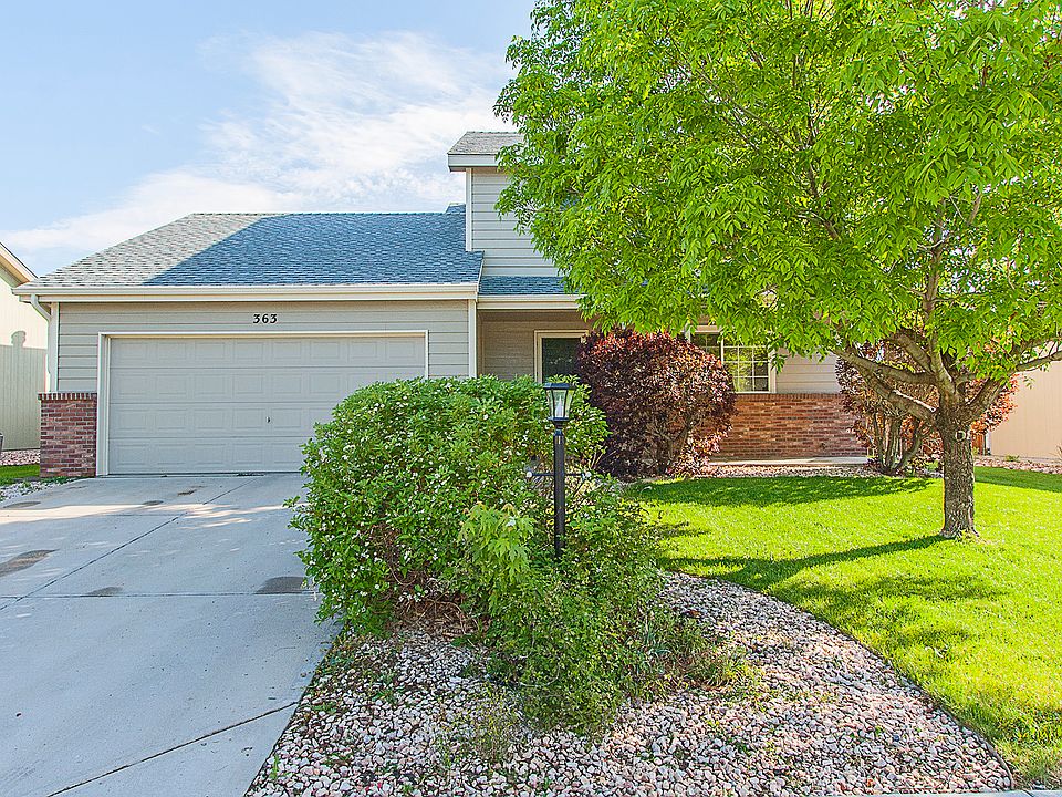 Great 2 story home in great N Loveland location w/ 3 bedrooms, 3 bathrooms & 2 car attached garage. Recent updates: new roof 2012, HW heater 2011, garbage disposal & built in microwave 2015, hot water heater 2011. New carpet & fresh paint on main level 2014. Spacious family room w/ a gas fireplace. Central A/C, washer/dryer, refrigerator included. Fully privacy fenced backyard w/ mature landscaping & patio. 10x18 storage shed included. HOA fee of $250 is one-time transfer. No monthly HOA.