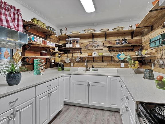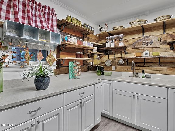 7 miles to North Topsail Beach and 10 miles to Surf City Topsail Island! Great Location, close to everything, yet in a Country setting- Boats & RV's are welcome here! Mid-Century Brick Ranch originally a 3 bedroom home-converted to two bedrooms to meet the family's lifestyle. Glistening quartz countertops in the kitchen remodel sparkle below the wooden shelving! The dining area opens onto the living room and the sunroom. The sunroom is the entry point from S Parker Rd and the Living room faces Tar Landing Rd. The 2 bedrooms are to the left. The original doors remain on the back bedroom which is a large space that could be converted to the original layout. The bathroom was recently remodeled and the entire home has LDV flooring throughout. To the right of the living room is a huge 18x18 family room with an entry door to the garage. There is an oversized carport to accomodate RV's and Boats with an additional parking pad beside it, the owner uses the S Parker Rd driveway, there is a coveted Pecan tree beside the driveway. There is another driveway on Tar Landing Rd and the front yard is fenced in. The home is move in ready, the washer and dryer convey. Located by the new Coastal school and the midpoint between the North Topsail and Surf City bridges. This location is key because it is also the midpoint between Wilmington and Jacksonville as well. Close to beaches, base, shopping and medical. Schedule your appointment today! A new septic tank will be installed the 3 bedroom septic will be on file @ Onslow County.