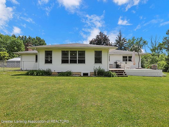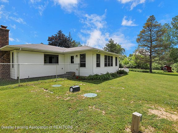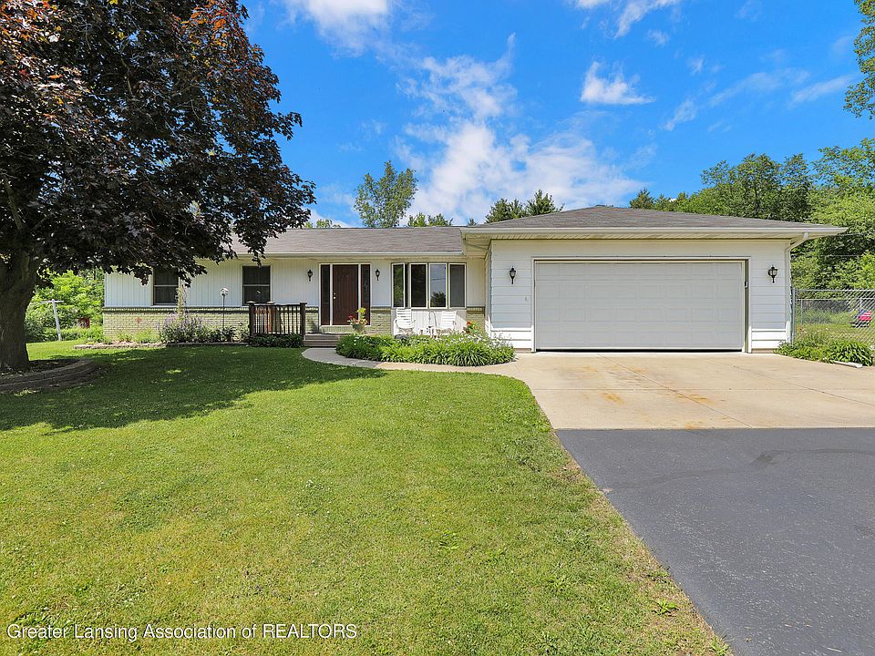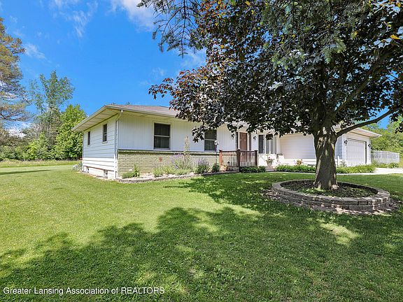 Spacious Ranch Home on 4+ quiet country acres. 16' x 20' composite deck with fire pit, dog run with fence & garden shed. Numerous updated including Anderson windows, carpeting, chimney, deck and septic system. Living Rm with sunny bay window. Dining Room with cozy sitting area and hardwood flooring/carpeting. Kitchen with large walk-in pantry & hardwood flooring. Family room with brick FP, beamed ceiling and large sunny window overlooking the back garden. Primary Bedroom with large walk-in closet. Lower Level has a bar area, 3rd Bedroom, and storage. 2 car attached Garage with electric door opener plus a 30' x 40' Pole Barn with attached 14' x 30' carport.
