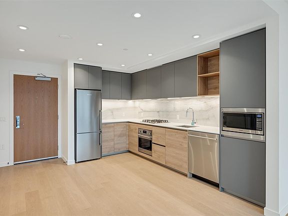 For a limited time only, price INCLUDES GST. Welcome to Dockside, ideally located in Vic West, just a short stroll or bike ride to Victoria's Inner Harbor. This stunning 13-story concrete building offers a 1-bedroom, almost 600 sq.ft. residence designed for livability. The state-of-the-art kitchen features Italian Cabinetry, Quartz Counters, and single slab marble backsplash, complemented by European Appliances including Blomberg Fridge, Dishwasher, Fulgor Milano Oven & Gas Cooktop. Resident-exclusive amenities include a rooftop patio with 3 BBQ's, dining area, gas fire pit, and unparalleled views. Additionally, enjoy a world-class fitness facility, social lounge, pet wash station, bike station, bike storage, and a large storage locker. No size restriction for dogs and rentals are allowed. Come experience luxury living at Dockside Green, one of Victoria's most prestigious addresses. NO PARKING INCLUDED OR AVAILABLE FOR PURCHASE.