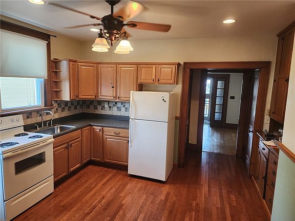 Great investment opportunity with this 3-story brick home along with bonus apartment above a 2 car garage! The first floor apartment features 2 bedrooms and 1 new bathroom. Beautiful hardwood floors and original woodwork throughout. The kitchen has been tastefully remodeled and features recessed lighting, tile backsplash and wood cabinetry. The second floor apartment features 2 bedrooms and 1 bathroom. This apartment has been recently remodeled and features a new bathroom, kitchen and laminate flooring. This apartment also features a bright and airy sunporch. The third apartment has 1 bedroom and 1 bathroom. The kitchen and bathroom are updated. The bonus property in the back has 2 very spacious garage bays with tons of storage.