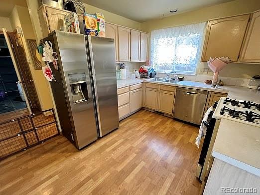 Welcome to 363 Wadsworth Circle, a charming 4-bedroom, 3.5-bathroom home nestled in the peaceful Kensington neighborhood of Longmont. This 2,274-square-foot residence, built in 1993, offers a perfect blend of comfort and functionality. As you step inside, you'll be greeted by vaulted ceilings and a cozy gas fireplace in the living room, creating a warm and inviting atmosphere. The separate dining room is ideal for hosting gatherings, while the recently remodeled kitchen boasts Caesarstone countertops and oak cabinets, opening up to an expanded back patio, perfect for summer BBQs and morning coffee. The upper level includes the primary bedroom overlooking the backyard, a shared primary bath, and a second bedroom. The third bedroom is adjacent to the garden-level family room and bath. The finished basement includes the fourth bedroom along with recreation room and laundry.