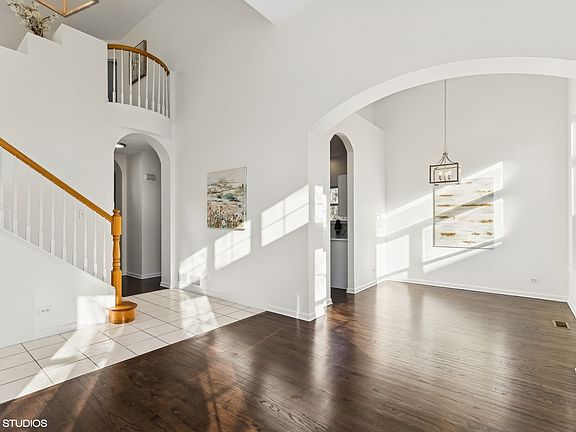 Don't miss this beautifully updated home, tucked away on a peaceful cul-de-sac. The striking two-story foyer and first floor are enhanced by graceful arches and a Juliet balcony, adding to the home's architectural charm. The main level features refinished hardwood floors and fresh neutral cream paint throughout, creating a bright, inviting atmosphere. The brand-new kitchen is a showstopper, with sleek white shaker cabinets, quartz countertops, and all-new stainless steel appliances. Upstairs, you'll find three spacious bedrooms, including a primary suite with two closets and a luxurious ensuite bath complete with dual vanities, a soaking tub, and a walk-in shower. The versatile loft space offers endless possibilities. Recent updates include a new roof and siding. The large unfinished basement is perfect for extra storage or can be transformed into a future rec room.
