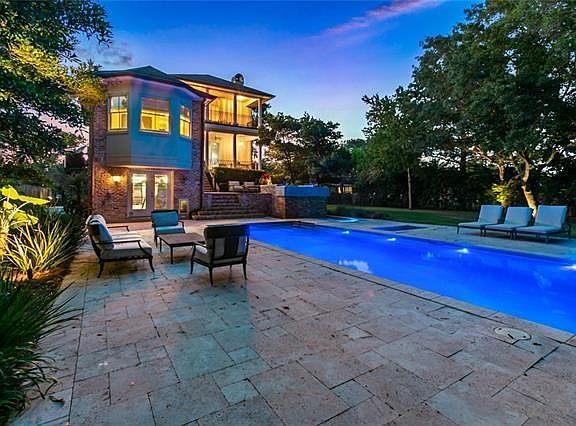 Breathtaking swimming poolTerraced yardFrench doorsBeautiful oak treesRejuvenating cold plungeTerraced courtyardsIlluminated pathways