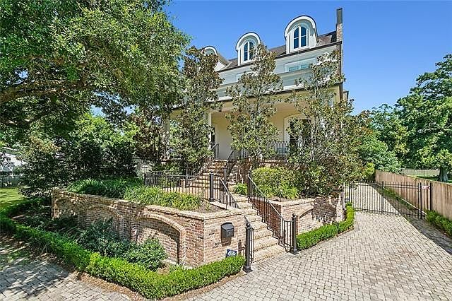 Discover this remarkable custom-designed "Italianate" style home in prime River Ridge location! Park like grounds with beautiful oak trees, Terraced courtyards and spacious porch As you enter foyer, dining room is to the right with butlers pantry that creates an exquisite setting for sophisticated entertaining. It is enhanced by chef's kitchen that boasts Crystallo quartz counter tops that shine beneath the soaring ceiling, showcasing premium appliances, including dual Bosch dishwashers, an ice maker, Subzero refrigerator, and convenient beverage drawers. Serene office/study to the left as you enter foyer. Large living room with ample natural light, travertine mantle, built in shelves, triple crown molding and French doors leading to the brick patio and terraced yard. It overlooks a breathtaking swimming pool featuring an infinity hot tub and a rejuvenating cold plunge, ideal for relaxation and social gatherings.Illuminated pathways guide you through the thoughtfully and beautifully crafted exterior and over sized lot. Four private en suite bedrooms, each with generous closet space. One en suite bedroom is on the main floor and the other three on on the second level. The primary en suite has new pine flooring, bespoke walk through closet and opens to a private balcony. Media/ game room on third floor. 2400 SQUARE FEET GARAGE, complete with finished walls and half bath offers limitless potential- whether for a car collection, more living area, in-law suite, home gym, cabana for pool , or storage. Steel frame construction. Tank less water heater. Near hospitals, schools, universities, shopping, etc. Easy access and just 15 minutes from New Orleans.