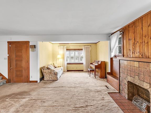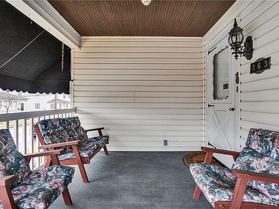 Spacious home on double lot. On the main level you have a large open living room, formal dining room, kitchen and a sunroom. The kitchen has nice oak cabinets and plenty of storage space. Upstairs you'll find 3 nice sized bedrooms with large closets, a full bathroom and access to a walk-up attic for additional storage space. The lower level is partially finished with a wood burner. Outside there is a covered porch with a deck overlooking the nice level lot. Lastly, one of this home's best feature: 2 two car garages!! One garage has been wired with 220V. This home is ready for your final touches.