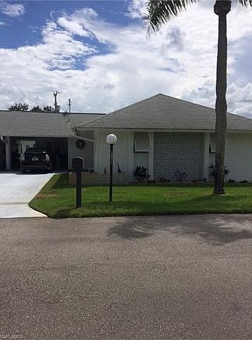 BACK ON THE MARKET!! Well kept 55+ single family community. This property has 2 bedrooms and 1 bathroom. Large open floor plan. Sliding glass doors lead to a shared courtyard. Large galley kitchen and dinning room is adjacent. Large master bedroom with folding door closets. Bathroom is a tub/shower combo. Large Family room and Large Formal Living room. This home has plenty of room for entertaining with Family and Friends. Close to Grocery stores, post office, restaurants, gas stations, Lehigh Acres Senior center and VFW post are just a short drive. Quick access to I-75 highway and Fort Myers International Airport, Boston Red Sox spring training stadium. Come and see this property today!