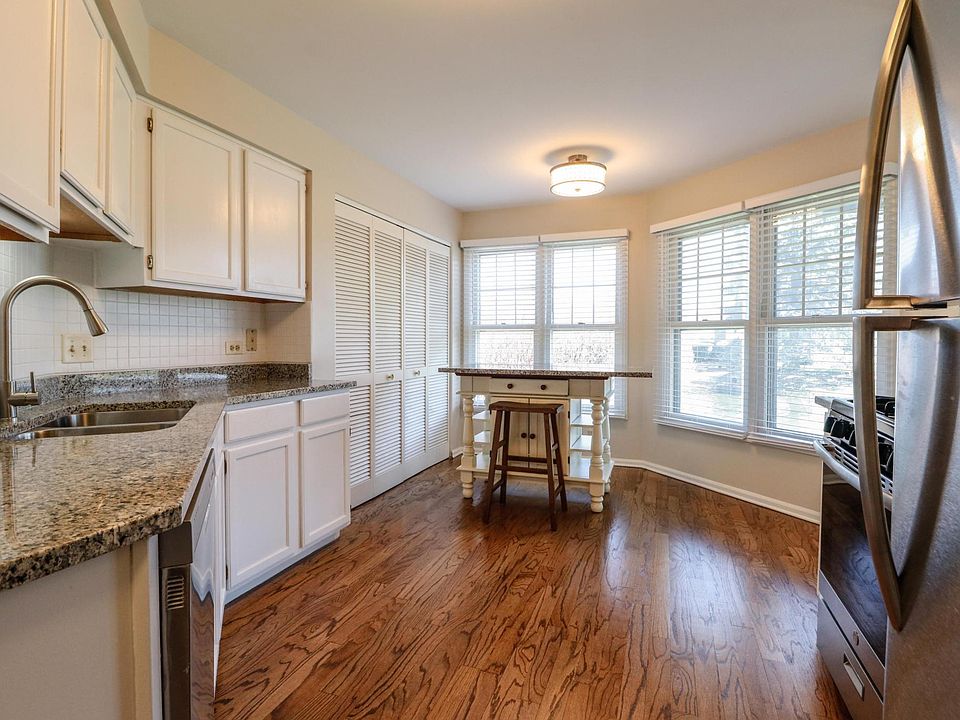 Updated end-unit first-floor townhome unit in the Willow Parkway community! Newer wood laminate flooring and fresh paint throughout! Beautiful open and sun-filled living and dining rooms are ideal for entertaining guests with patio access and fireplace! Gourmet kitchen has it all with a cozy eating area, stainless steel appliances, granite countertops, and ample pantry storage! Master suite is tucked away for privacy and boasts spacious walk-in closet and ensuite! Second bedroom, full bath and laundry room complete the main level. Finished basement is great for home gym, storage or indoor recreational activities. Open yard backs to pond and presents patio. Agents are welcome. Renter is responsible for water, gas, and electricity. No smoking allowed.