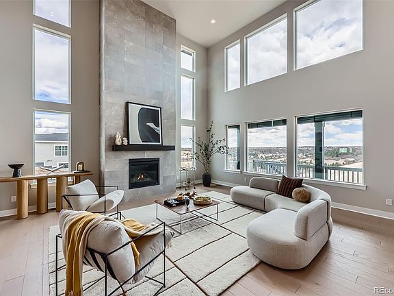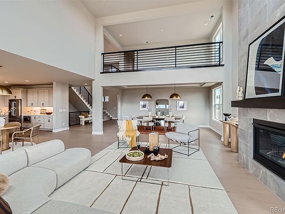 The Shavano Farmhouse impressive covered entry and two-story foyer with lovely wide turned stairs reveal the expansive great room, dining room, and desirable expanded covered deck beyond. The well-equipped kitchen is complete with an oversized center island with ample counter and cabinet space, and huge walk-in pantry. The majestic primary bedroom suite is highlighted by dual walk-in closets and deluxe 5 piece primary bath with dual vanities, large soaking tub, luxe glass-enclosed shower, linen storage, and private water closet. Central to a generous loft, secondary bedrooms feature walk-in closets, two with a shared bath with separate dual-sink vanity areas, one with separate full bath. Additional highlights include a secluded office with walk-in closet off the foyer, thoughtful everyday entry, convenient powder room, and centrally located laundry. The full unfinished walkout basement with added 1' height gives space for additional storage and/or future opportunities for finishing out.The expansive 15,000 sf lot backing to open space with canyon views and green space on one side make this home even more of a show stopper. Don't miss out on an opportunity to see it all for yourself!