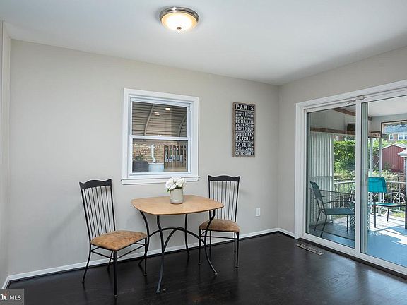 Amazing remodel that will not last. The home owner spared no expense with this complete remodel. Enter the home and you are greeted by an open concept floor plan. The designer removed both walls between the dining, kitchen and living room resulting in an amazing new open feel. The living room and dining area feature refinished hardwood floors and fresh paint. The kitchen has been completely redesigned with custom flooring, brand new easy close classic white cabinets, stainless appliances and granite countertops. The upper level has a large master and two additional bedrooms. The entire upper level boasts fresh paint, refinished hardwoods and ceiling fans in each bedroom. The bathroom had a complete facelift with a new tile surround, custom flooring and brand new fixtures. The lower level is fully finished and it too has been completely upgraded. This space can be a man cave, rec room, family room, call it what you want, this area meets your needs. A wonderful wood burning stove and brick surround is complimented by all new paint and custom flooring. The half bath has been remodeled as well and features granite countertops. A walk out basement exit and full laundry room finish off this desirable lower level. Exit the sliding doors from the kitchen/dining area to a fully fenced large back yard. The covered back porch overlooks a gorgeous brick patio. Perfectly situated for all your entertainment needs. The back yard also features a large storage garage with electric. Rarely offered three large parking spaces are also included. Convenient to 695, 295,895, BWI, Baltimore and D.C.