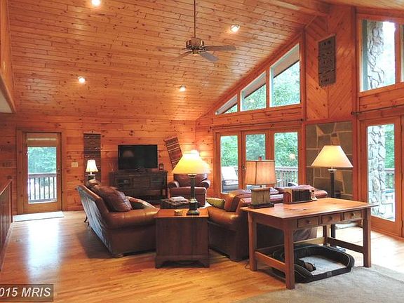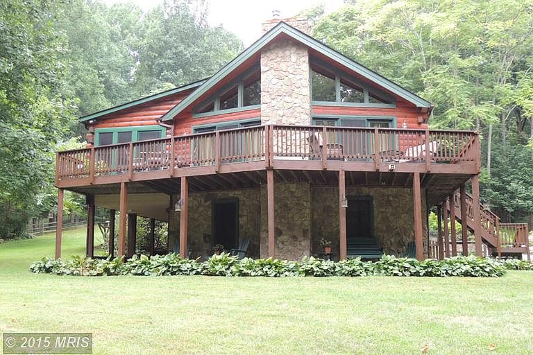 PRICE REDUCED! Majestic Log Home - 5.99 wooded acres. Magnificent upgraded kitchen w/ new granite, appliances & floors. Gorgeous open living room w/ cathedral ceilings, hardwood floors & 2 story windows to take in the breathtaking view. Renovated master bath. Heat system new 2014. Watch wildlife from your huge deck or wrap around lower level porch. Only minutes from I66 and shopping.