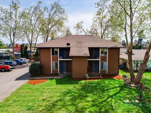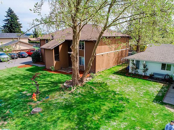 Modern four-plex on quiet dead-end street. Large lot with grassy front yard and dedicated paved parking, 2 spaces per unit. Mature trees offer shade. Lower units have private fenced back yards, upper 2 have decks. Master bedrooms w/ sinks. 2nd bedrooms have large walk-in closets. Fully occupied with long-term stable tenants. Washers and dryers in each unit transfer with sale. Major tree pruning completed recently. Nice community nestled conveniently between Portland & Salem. Easy to keep rented