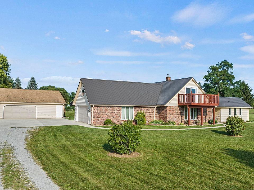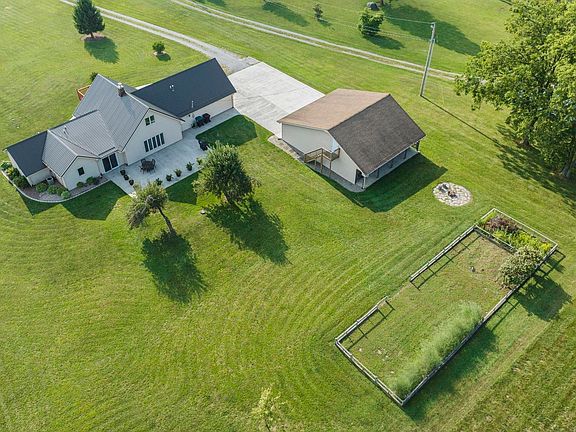 2.65-acre property with an attractive and well maintained 2,180 sq-ft home and outbuilding. The home has 4 bedrooms, 2 full baths, a 2-car attached garage, a 2-car detached garage with a 3rd bay workshop and additional corral style shed space. Main floor living with 2 bedrooms, a den, 1 full bath, the laundry room, the kitchen, and living room all located on the 1st floor. Hardwood floors in the living room and upstairs bedrooms. Laundry room remodeled in 2023 with new flooring and convenient coat-cubby installed. The property has a large back patio, nice firepit, apple, pear, peach and mulberry fruit trees, a large garden, large concrete parking pad between the home and detached garage. The owners recently invested $36,000 in a new metal roof in 2021 and an additional $2,600 in an invisible fence system (2 dog collars included). Furnace and AC are both 10 years old. Natural gas service to the home. Well water and septic system. Refrigerator, range, washer-dryer, water softener, iron filter all included.