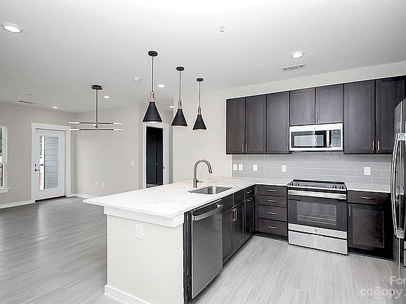 New construction condo building in NoDa on the light rail. Community has secure entrance covered parking, a 3,500sqft furnished amenity deck with gas fire pits, grills, sinks and more. Price includes all builder upgrades and is move in ready. BUILDER UPGRADES INCLUDE: Digital door lock, Upgraded Wexford Cabinets, Coffered bedroom wall, custom concrete counters, White Penny Tile shower, Frameless shower door, Upgraded plumbing fixtures and upgraded lighting - over $15,000 in upgrades.