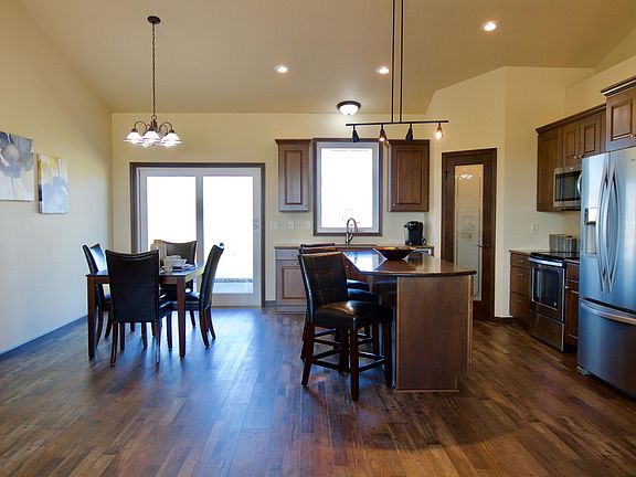 New construction ranch style slab on grade twinhome with no steps in Lakewood in Mandan that has many upgrades. This 1,870 square foot home includes 3 bedrooms and 2 bathrooms. The master suite includes dual sinks, 5' master bathroom shower and walk-in closet. All doorways in the home have 36'' doorways to allow wheelchair access including the 2 guest bedrooms and full bathroom. The open floorplan includes quartz countertops in the bathrooms and kitchen that includes a kitchen island and large pantry. The home does have a high efficiency furnace with Aprilaire and high efficiency filter. The oversized 1,216 square foot attached 3 stall garage is insulated, sheetrocked with texture & painted, heated and with floordrain. There is an additional room in the garage for added storage. Relax on the either the front or rear covered patios with recessed lights. The yard is already completed for you with black dirt, underground sprinkler system and hydro-turfed. Property will qualify for the city of Mandan tax exemption on new construction. SELLER WILL CONSIDER ANY TRADE-INS. Taxes and specials incomplete, buyer to verify. Seller related to agent. Interior photos from completed unit.