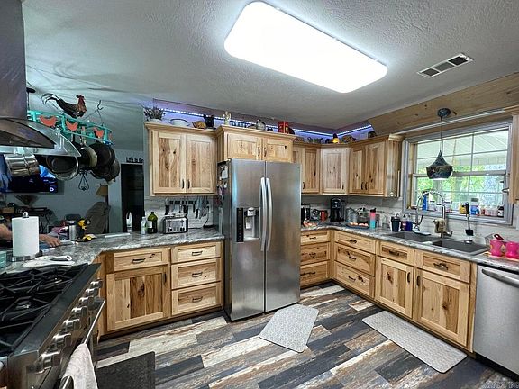 Mini farm with well maintained 3 Bedroom, 3 Bath, brick home on 5 un-restricted, fenced, cross fenced acres with pond located less than 4 miles from Ash Flat. Home features walk out basement, dedicated laundry, office which could be a 4th bedroom, new kitchen, flooring, metal roof new in 2018, new HVAC installed in Dec 2019, new solar panels in 2021, and privacy fencing along highway. Large back deck with a 16 X 32 above ground pool that's perfect for backyard living! Extra storage in the detached garage/ shop, along with the 10 x 16 Bald Eagle Barn She Shed. There is a 40 X 40 barn for livestock or hay with electric and water. Chicken coops already established and fenced areas for them as well as your fur babies.