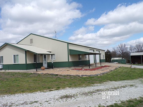 2 COMPLETE LIVING AREAS on 20 ACRES. Owner ready to sell. Main living area has 2 bedrooms with a large office that could also be a bedroom and 1 1/2 bath. This is a very well built home with 7'' double insulated walls and 40 year painted steal exterior. The home is Extremely energy efficient. Main living area (1584 sq ft) is accessible without any steps. It has 2 br, office , living room, large sun room and galley kitchen with large pantry. The 2nd living area (816 sq ft) has 2br , kitchen, combination full bath/utility, large living room and its own entry with covered porch. Also accessible from garage. This area is great for company or additional family. The garage is 48x29 with overhead doors to accommodate an RV. In the garage area is a finished 10x18 room with AC for a great hobby room.. There is a new 32x52 shop building built last year with double insulated walls ans with 2 12x12 overhead doors and concrete floors. Wired for (220) Property has two additional metal buildings one is 72x38 with 4 parking stalls,a enclosed 12x10 insulated room and a 24x38 area to store hay. There is another building 25x36 that has with 3 parking stalls great for those tractors and etc. There is a 12x10 storm shelter and a green house. The pond has a built in year around cattle waterer . Property has cattle tight fencing. There is no step between the garage and there are 36'' exterior doors making it easily accessible for wheel chairs. There is a free standing propane fireplace in the sun room that owners used to heat the entire main home. Just 10 minutes from highway 13 for easy commute.