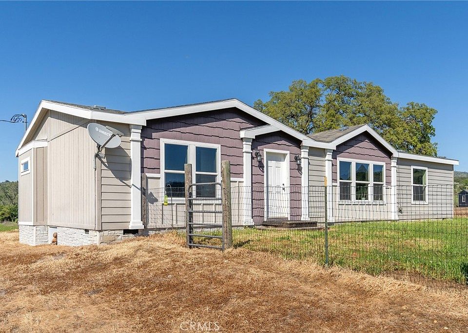 Tranquil ranch living with unmatched views just minutes from Chico, Paradise and Oroville. Panoramic views across the rolling hills towards the Sutter Buttes are truly unmatched, 12 usable acres fully fenced are ideal for cattle, horses or the rural lifestyle you have been dreaming of. This 2016 built home offers a 3 bedroom 2 bath split floor plan, the primary bathroom has a separate walk in shower and soaking tub plus a good sized walk in closet. Kitchen island with breakfast bar and dine in kitchen, indoor laundry with lots of storage. There is a strong will with 5k gallons of water storage, there are approved plans for a stick built home, the building pad is in place with extra power to the pump house. A second 3 bedroom septic has been completed as well as a large building pad for your shop or oversized garage.
