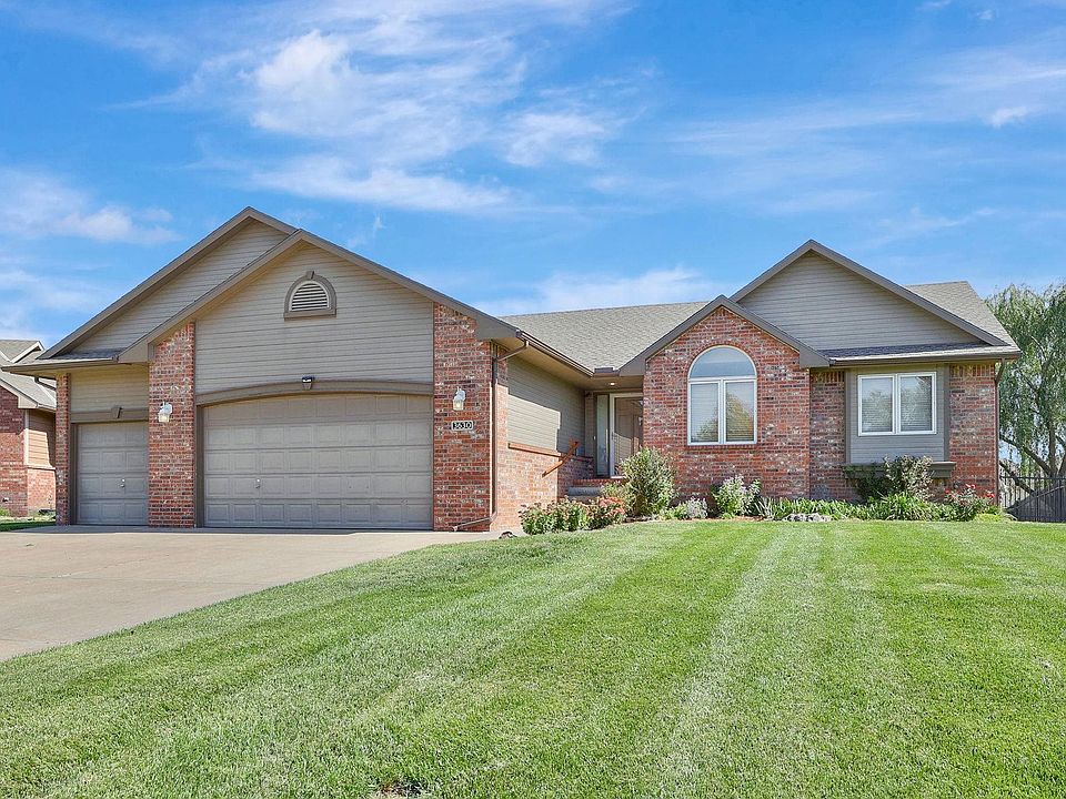 Impeccably maintained ranch-style residence in the desirable Ridge Port area with a BRAND NEW ROOF! Featuring 4 bedrooms, 3 baths, and a spacious 3-car garage, this home offers a seamless open floor plan with stunning hardwood floors in the kitchen and dining area. The kitchen boasts stainless steel appliances and convenient main floor laundry. The master suite is a retreat with a charming corner tub, separate shower, dual vanities, and a generous walk-in closet. A full view out basement adds to the appeal, providing a large family room and game area, along with a bonus 5th room (non-egress). Enjoy the warmth of a double-sided gas fireplace in the living room and an additional gas fireplace in the basement family room. Built-in shelves in the storage room contribute to the home's functionality. Complete with irrigation well, sprinkler system, wrought iron fence and deck that has been recently stained. Inside the 3 car garage is a handicap ramp that can be removed. This residence is the perfect showcase for even the most discerning buyers!