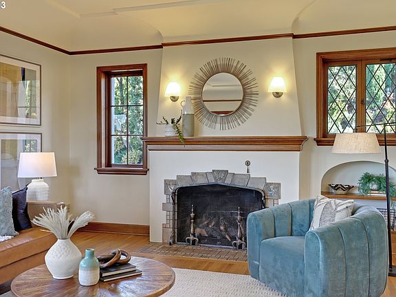 Exquisite European design that will surprise and delight! Stellar location on the ridge with expansive views from every room sitting on an oversized corner lot that affords ultimate privacy.Architectural details from a bygone era, Circa 1929 intact with many updates for modern life. Features include Oak hardwood floors, iron railings, coved ceilings, period millwork, multiple double pane Marvin & Milgard windows, two fireplaces converted to gas and newer high efficient gas furnace. Entertainer's dream with great floorplan. Recently freshened paint, floors & landscape for move in ready convenience. Rare attached double garage with new doors, openers and EV charger. Merges Dr is a charming 2 block lane used by more pedestrians than autos with highly rated schools, parks, shopping dining and good transit all nearby [Home Energy Score = 4. HES Report at https://rpt.greenbuildingregistry.com/hes/OR10219801]