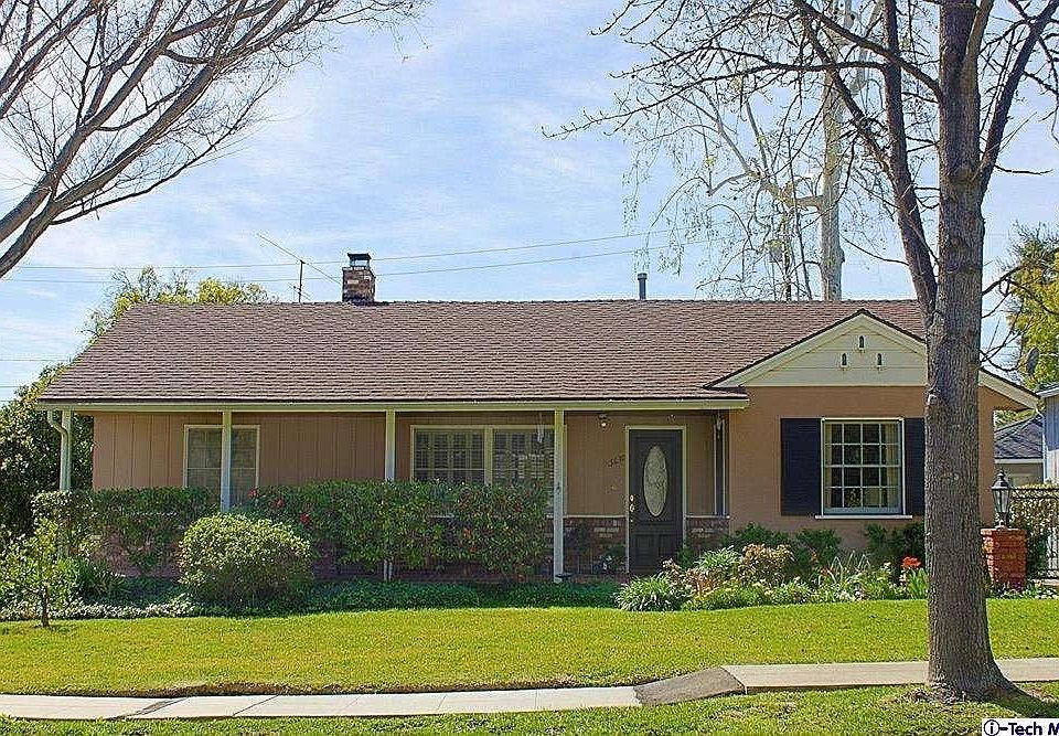 Located on a quiet street in Lower Hastings is this charming traditional style home. The long front porch invites you to enjoy afternoon tea taking in the San Gabriel mountains. The formal entry opens onto a formal living room anchored by a flagstone fireplace. On the west side is a convertible bedroom and three-quarter bath. The formal dining area overlooks a spacious step-down family room with the garden beyond. The kitchen is large, sunny and offers a breakfast area and adjacent laundry room. The house is ready to be updated, and made your own. Out back is an entertaining area with wistaria-covered pergola, grassy spot, and mature avocado trees. A two-car garage and paver stone driveway complete this lovely home.