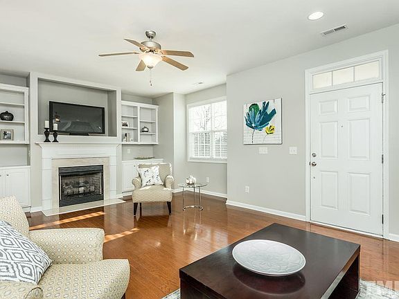Live in one of the HOTTEST neighborhoods close to downtown Raleigh! Enjoy a short walk from this end unit townhome to the pool, tennis courts, sand volleyball court, gym, and playground. Home is well appointed with fresh paint, new stainless fridge, hardwood floors throughout the first floor and custom built-ins in the family room. Upstairs, find all three bedrooms and a conveniently located laundry room. Single garage in the rear of the home. HVAC is only 3 years old!