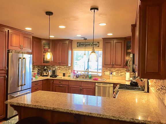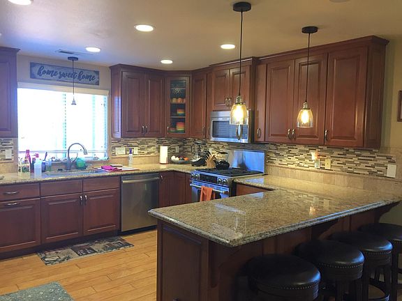 Stupendous 5 bedroom, 3 bath home at the end of the road. Exquisite remodeled kitchen with high end appliances, granite counter tops and custom soft close cabinets. In addition to the large bedroom count, this home features a spacious living room with gas fireplace, quality flooring, vaulted ceilings with skylights, and a family room, and a loft perfect for a den or office. The yard is large and offers privacy, a patio and out building.