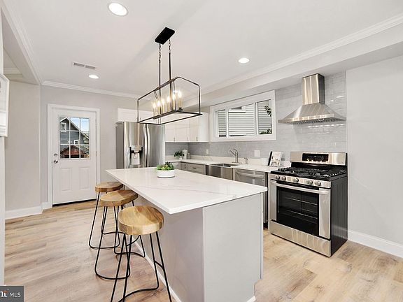 *Total square footage 1,674* Every inch of this classic front-porch traditional home has been renovated to perfection, with clean, modern design updates top to bottom. The combination of an oversized fenced yard, large sunny deck, gated off-street parking and superb location in the Woodridge neighborhood make this home an incredible find in Northeast DC. From the recessed lighting to gorgeous hardwoods, crown molding and stylish tilework in the baths and kitchen, no detail has been overlooked in the renovation of this [1920s] gem. The main floor offers a bright, wide-open floor plan with a sleek modern kitchen featuring all new stainless appliances, quartz countertops and island seating with storage. The kitchen opens out to a large deck and large private parking pad that may accommodate two cars. Upstairs are three bedrooms with a full bath, and the fully finished walk-up basement offers additional flexible living space plus an additional full bath. Everything is new outside the home, too, with a new roof, siding and windows ensuring years of low-maintenance living. Ready to move in and just minutes to route 50 and shopping. Only one block to Taft Recreation Center.