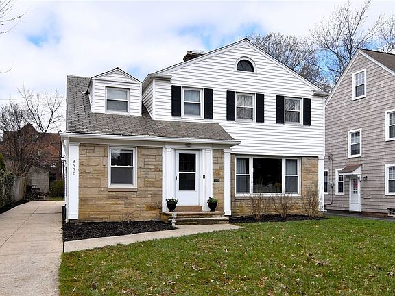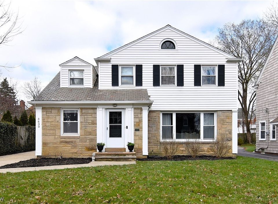 Welcome to your storybook retreat in the heart of historic Shaker Heights. Nestled on a serene street, this charming colonial captivates from the moment you arrive with its striking curb appeal, updated siding, and timeless stone façade. Step into an inviting foyer alcove, complete with a coat closet, and be greeted by an abundance of natural light that fills the expansive living room. Gleaming hardwood floors and an open, flowing layout create an inviting atmosphere ideal for both everyday living and entertaining. A bonus room at the front of the home offers the perfect space for a home office, library, or flex room. Elegant details abound?from the decorative fireplace and rich tray ceilings to the beautifully crafted wooden banister and marble window sills. The formal dining room, adorned with classic molding and chair rail, opens to an enchanting three-season enclosed patio with a walk-out balcony above?ideal for morning coffee or evening relaxation. The spacious eat-in kitchen is a chef?s delight, featuring abundant cabinetry, stainless steel appliances, and a gas stove for precision cooking. Downstairs, discover a finished recreation space with luxury vinyl flooring, a stylish full wet bar, and an unfinished utility/laundry area offering generous storage. Washer and dryer are included for your convenience. Upstairs, three generously sized bedrooms await, including a tranquil primary suite with its own private full bath. An additional beautifully updated full bath is located off the hallway, accompanied by multiple large linen closets for effortless organization. Outside, enjoy a partially fenced backyard and an attached garage with rear entry access. The manicured yard provides a peaceful setting for outdoor living and entertaining. Lovingly maintained and move-in ready, this exceptional home is being offered with a 1-year home warranty for added peace of mind. Be sure to view the attached video tour, and schedule your private showing today--this Shaker Heights