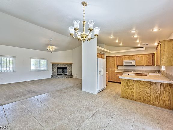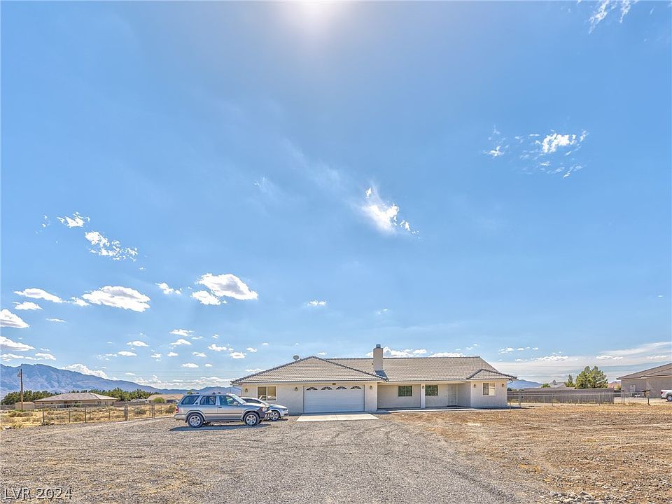 Embrace expansive living with this Pahrump property, set on an acre lot renowned for peaceful horizons. The outdoor expanse provides freedom for equestrian pursuits while affirming its status as a quintessential farm property. The single-story home boasts an interior filled with natural light, emphasizing a spacious layout that seamlessly flows from room to room. The grand living area, featuring a cozy fireplace, tiled floors and an open-plan feel, promises comfort and stylistic versatility. The adjoining kitchen, characterized by plentiful cabinetry and practical counter space, awaits culinary activity and family gatherings. This well-maintained residence presents ample opportunity for personalized enhancements or to appreciate as is, offering a blend of tranquility and practicality.