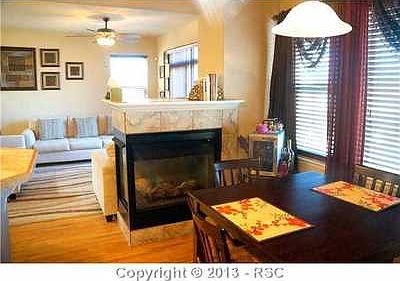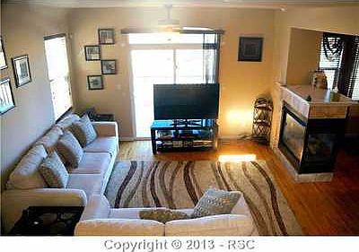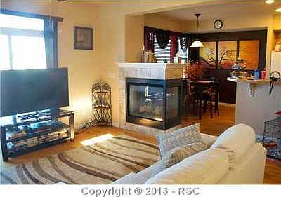 This gorgeous luxury townhome shows like a model! Beautiful floorplan, hardwood floors throughout, spectacular Pikes Peak views. A 3 sided fireplace graces the open floorplan. No neighbors directly behind & the deck looks out on the magnificent views. The upper level laundry room makes doing laundry a snap! Room to expand in the unfinished walk-out basement. The master suite is spacious with coffered ceilings, 2 walk-in closets, more mountain views, and a luxurious 5 piece master bath. You will love it-see it soon!