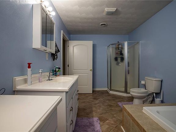 Welcome to your new countryside retreat! This deceivingly spacious ranch-style home offers a perfect blend of peaceful country living with modern convenience. The primary suite is a spa-like escape, featuring a luxurious jetted tub, dual sinks, and a separate stand-up shower. The open layout provides generous common areas and large bedrooms, suited for a variety of needs. Step outside and discover an enchanting backyard with an opening through the trees that leads to a hidden clearing—ready to be transformed into your own "secret garden" with native wildflowers and plants. Whether you dream of homesteading or simply enjoying the great outdoors, this property offers endless possibilities. More convenient to grocery stores than you may think, it’s the best of both worlds—country charm with living convenience. Your next adventure awaits!