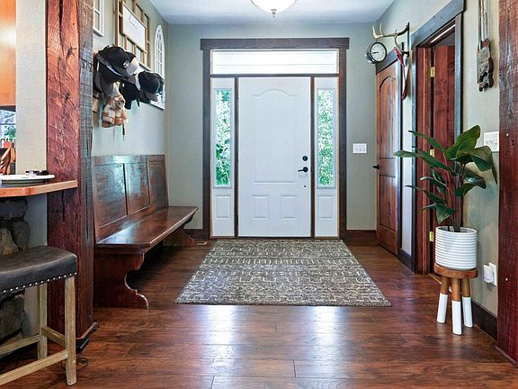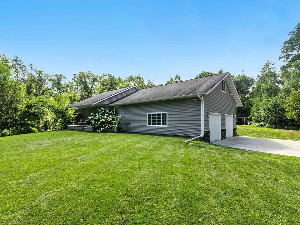 Stunning 4-bedroom 3-bath home with a beautiful master bedroom with a custom rock shower and raised rock soaker bathtub nestled in the woods on 8 acres close to all the lakes for year around entertainment. This boasts of all the new additions that have been added: spray foam in the garage, seamless gutters, concrete porch in the back yard, concrete porch by the front door, two concrete aprons, deck in the backyard, tar driveway, remodeled half bath upstairs, water softener, washer, dishwasher, pressure tank, pressure tank for geothermal, rock on the front of the garage, and more. The 16x10 utility shed that can be negotiated. Geothermal heating/cooling system with furnace propane back up. Trails in the woods for kids to enjoy along with natural habitat with a lot of wildlife just out the door. Average of 1% propane use per winter, average electric bill with everything included approx. $225.00. So many custom features, including kitchen cabinets and L shaped rock serve through counter, custom trim work. You don't want to miss out on this one. Its move in ready in an amazing location.