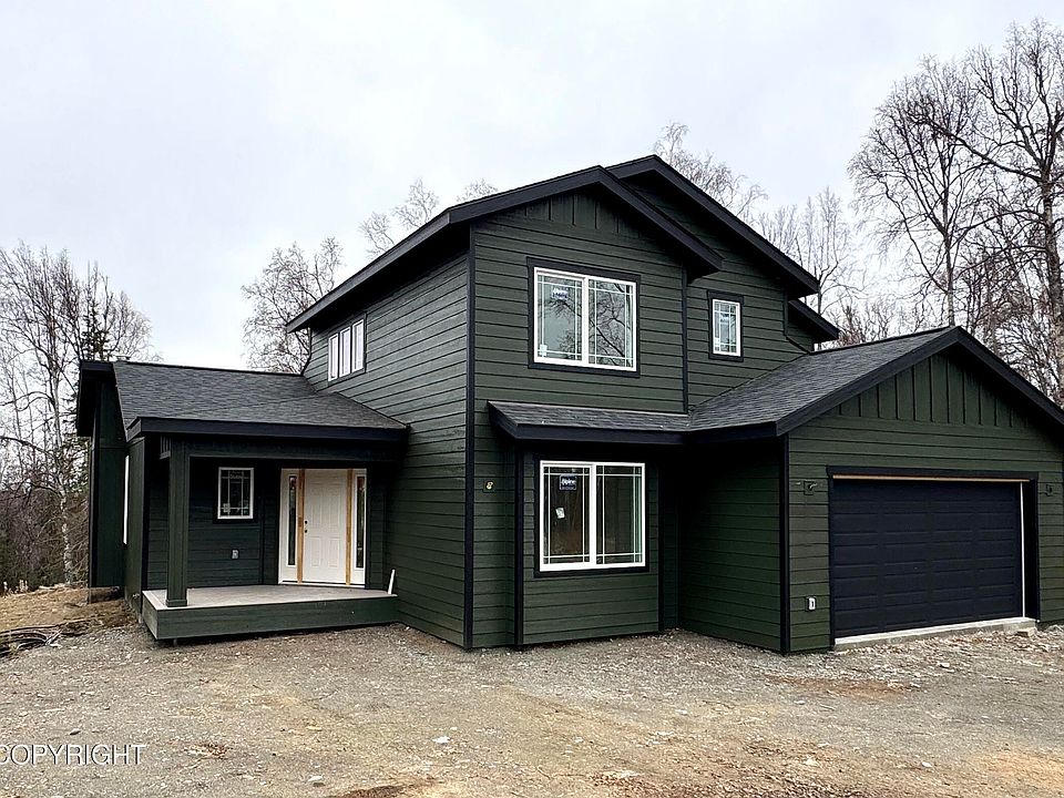 This 2081sf NEW home is situated on a peaceful .92 acre lot. Thoughtful design & custom touches throughout create a warm yet modern feel, from the open-concept living spaces to the stylish finishes. The private primary suite + 3 more bedrooms provide plenty of room for family or guests. The attached garage has plenty of room in it. Quartz counters, Luxury vinyl plank, wood stove & in floor heat.Home does qualify for the Alaska Housing Finance $10,000 New Construction Rebate should buyer chose to apply for it.