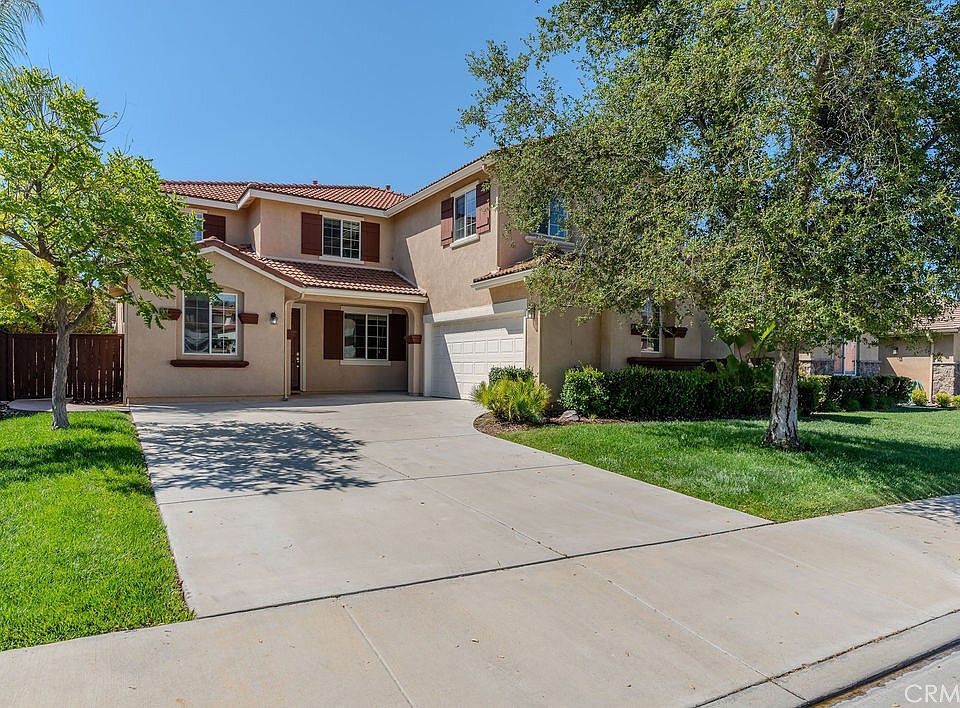 ***BACK ON MARKET AT NO FAULT OF THE SELLER!*** Move-in ready beautiful home in the desirable community of Clayton Ranch which is conveniently located and close to both the 15 and 215 freeways. Driving up to this home you see freshly painted exterior accents and alluring curb appeal on a quiet area of the street. This home also has brand new carpet throughout, fresh paint and beautifully landscaped front and back yards. This home has a formal dining room, an open concept kitchen connected to a great room with a fireplace and numerous windows for natural light and a secondary living room with tall ceilings and beautiful views of the manicured backyard. The kitchen also includes space for a breakfast nook and has a convenient island and pantry with many cabinets for storage. There's a bedroom and full bathroom downstairs as well and the primary suite is on it's own wing upstairs with a connected en-suite bathroom with dual sinks and a separate soaking tub and walk-in closet. Just beyond the other two guest bedrooms and full bathroom is an enormously oversized loft with so many possibilities for it's use. The backyard boasts a sizable entertaining area with a built-in BBQ area and plenty of grass for kids to play as well as mature trees and bushes including a peach tree and blackberry bush! This move-in ready home has everything you could ever need!