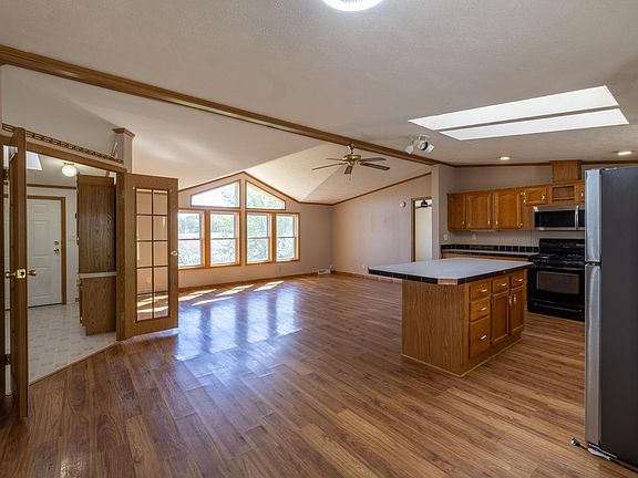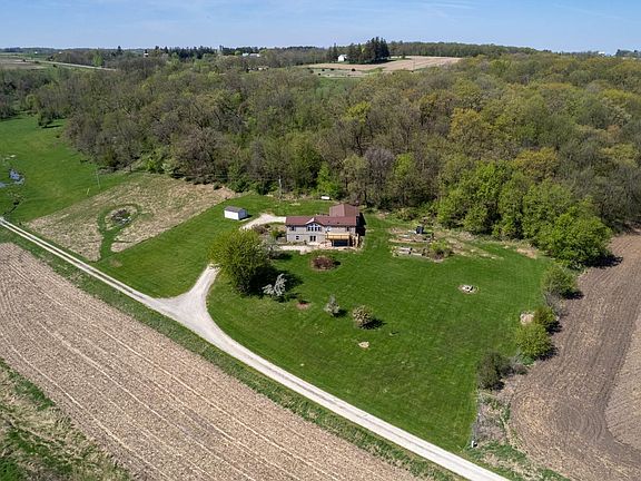 Stunning Country Retreat on 5 Private Acres! Escape to peace and privacy in this beautifully updated home nestled in the countryside. Set on 5 acres of scenic land with breathtaking views, this property features mature pear and apple trees, flourishing rhubarb patches, and raspberry bushes—perfect for nature lovers and hobby gardeners. Step inside to a bright, open-concept main floor with vaulted ceilings and replacement windows that showcase the panoramic landscape. The large kitchen offers new appliances, generous counter space, and an inviting layout ideal for entertaining. The adjoining living room offers a cozy yet spacious area to relax while taking in the view. Enjoy main floor living with three comfortable bedrooms, including a primary suite with a walk-in closet and brand new luxury vinyl plank flooring. Recent improvements include: Newer metal roof, deck, outside wood boiler, central air, furnace, new septic system, and replacement windows. The walkout basement offers exceptional flexibility, complete with its own kitchen, dining area, bedroom, bathroom, and living room—an ideal setup for a mother-in-law suite, rental potential, or extended family living. This rare gem combines modern comforts with rustic charm and self-sufficiency. Don’t miss the chance to make this serene property your forever home!