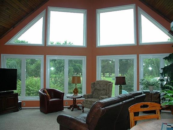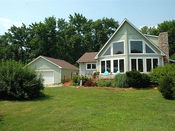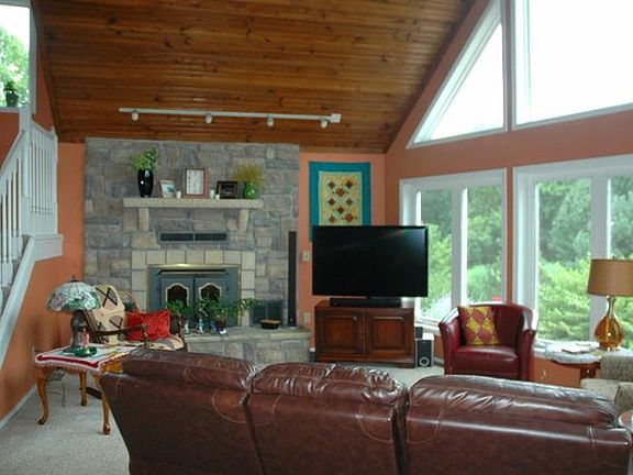 Country living in this secluded home on 4.5 acres at the edge of town. Large living room and family room, 3 bedrooms, 3 baths, beautiful kitchen with pantry and granite, and contemporary open floor plan. Sun room has hot tub and owners have put in moisture barrier sheet rock and slate flooring to protect surfaces in that room. Stone fireplace has two doors with one opening on deck to insert wood from outside. A wrap around deck has several spots to enjoy the beautiful landscaping and the various garden spots the owners have created. You will be able to enjoy 7 red and golden delicious apple trees, 2 cherry trees, 5 peach trees, 3 pear trees, grape arbor, thorn-less blackberries, strawberries, raspberries, and asparagus. Stocked pond on the back of property is surrounded by a grove of trees and has a pump for irrigation. Owners have recently had a new drive installed with a 5 year warranty leading to a 2 car garage and 30 X 40 barn.